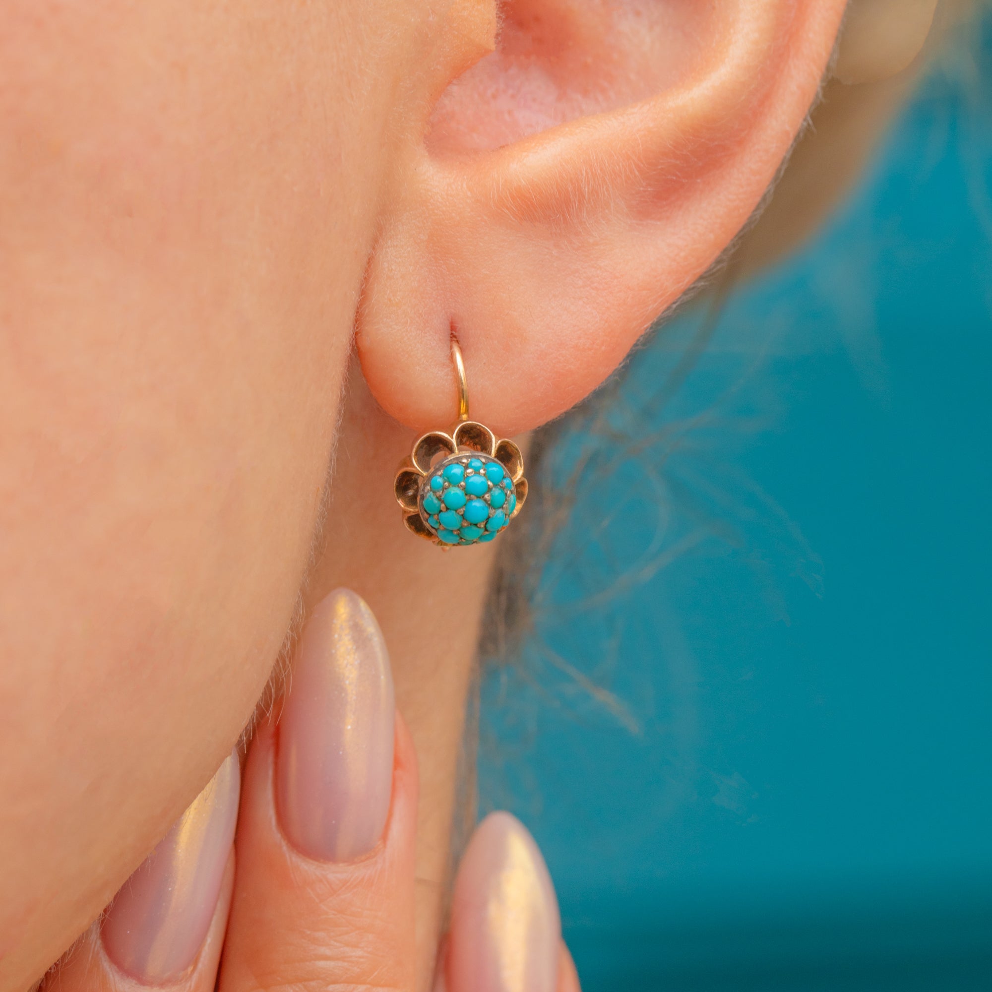 Victorian Turquoise 18ct Gold Cluster Bombe Earrings