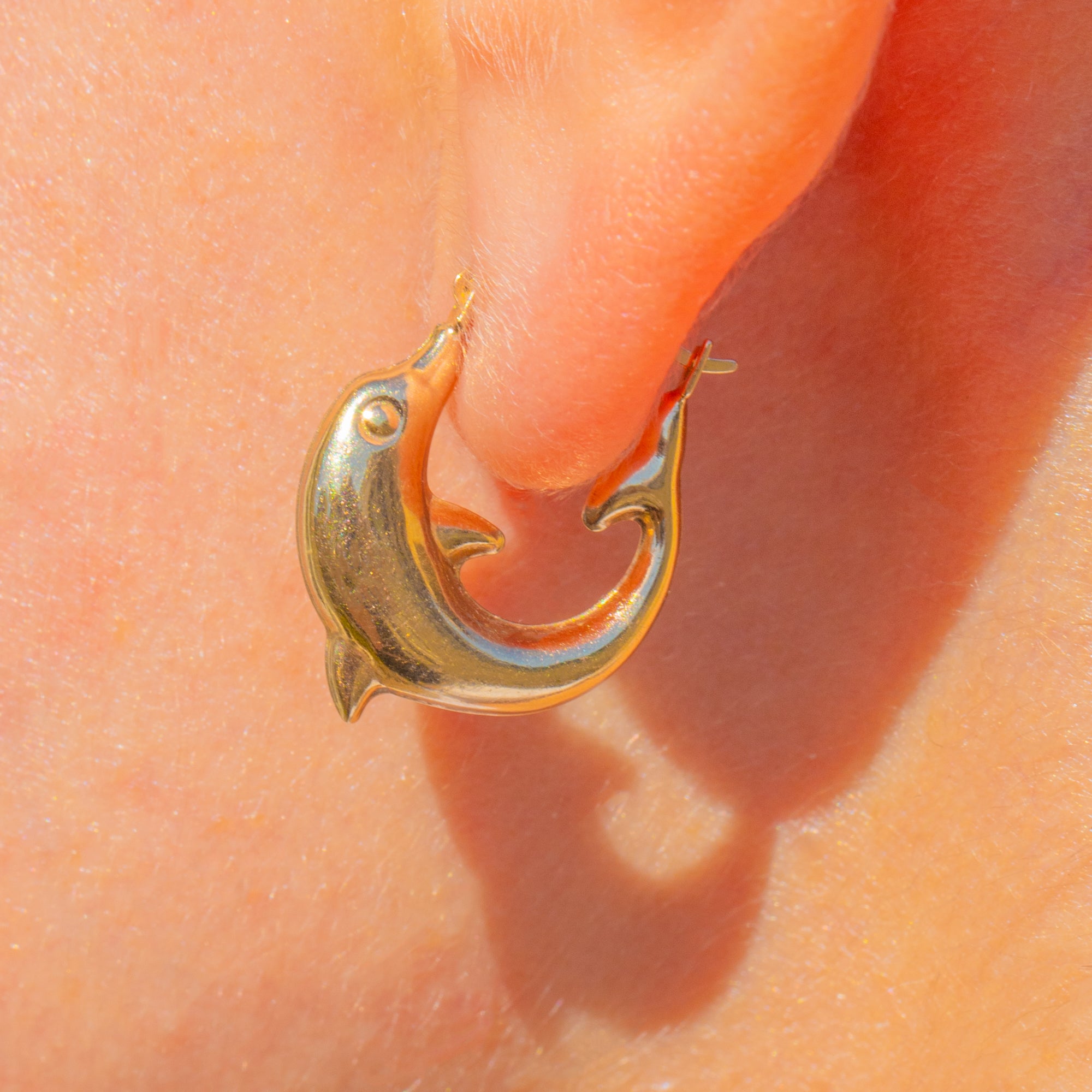 Playful yet polished, these Vintage 9ct Gold dolphin huggie earrings bring a joyful splash of nautical charm to your everyday. Each sculptural dolphin curves fluidly to form a compact hoop, their sleek high-polish surfaces catching the light with every turn.