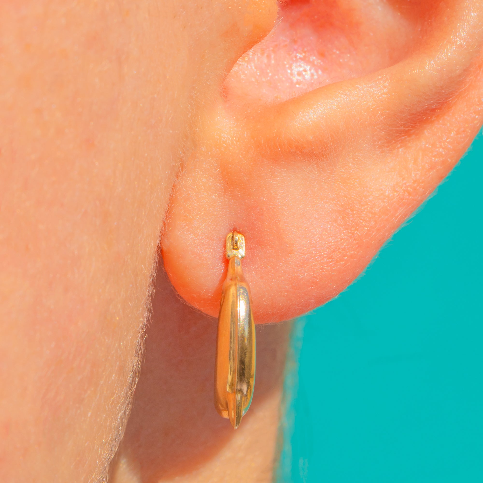 Designed for effortless wear, the integrated hinged huggie mechanism clicks closed securely for comfort and ease. No gemstones, just the warm glow of solid 9ct Gold and a cheerful, contemporary silhouette that pairs beautifully with studs or stacks alike.