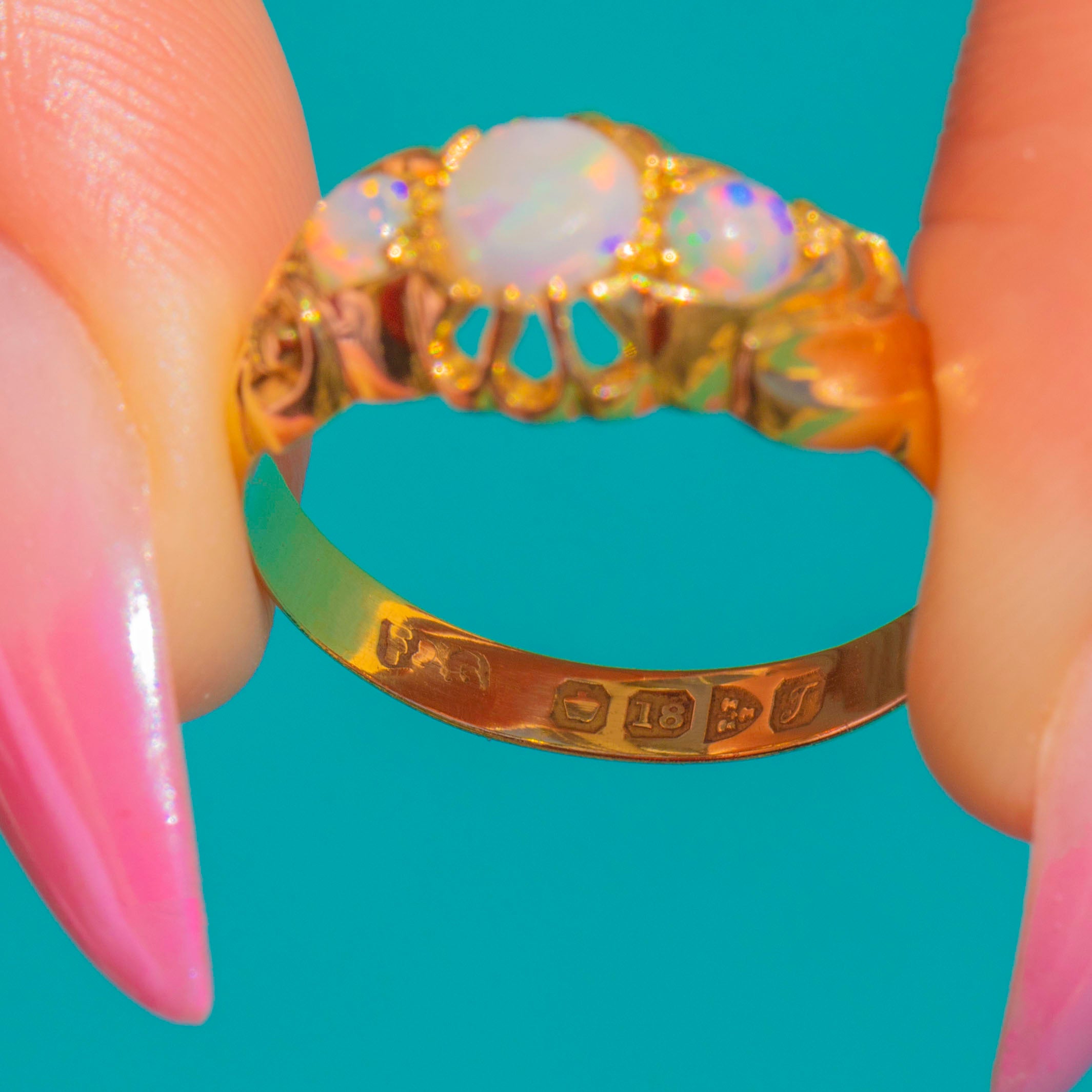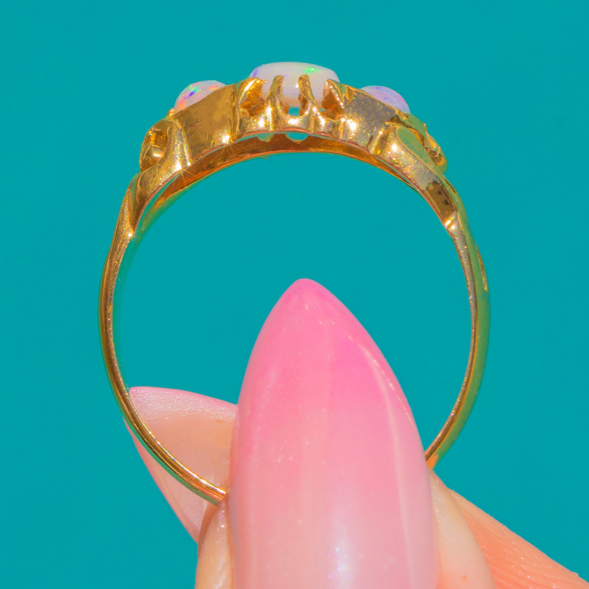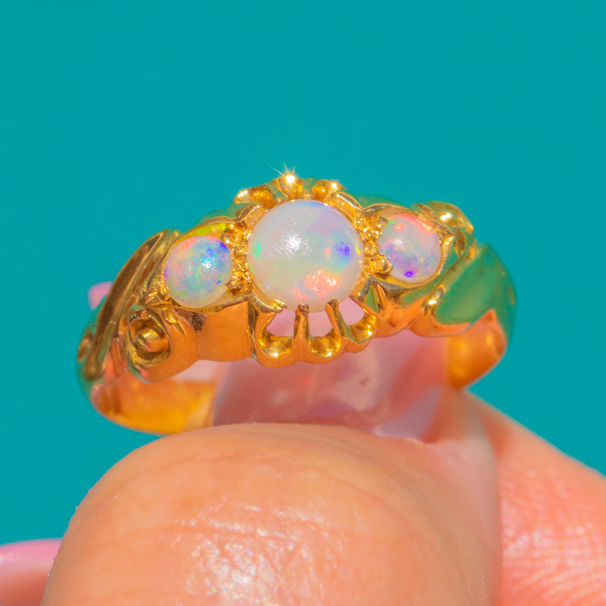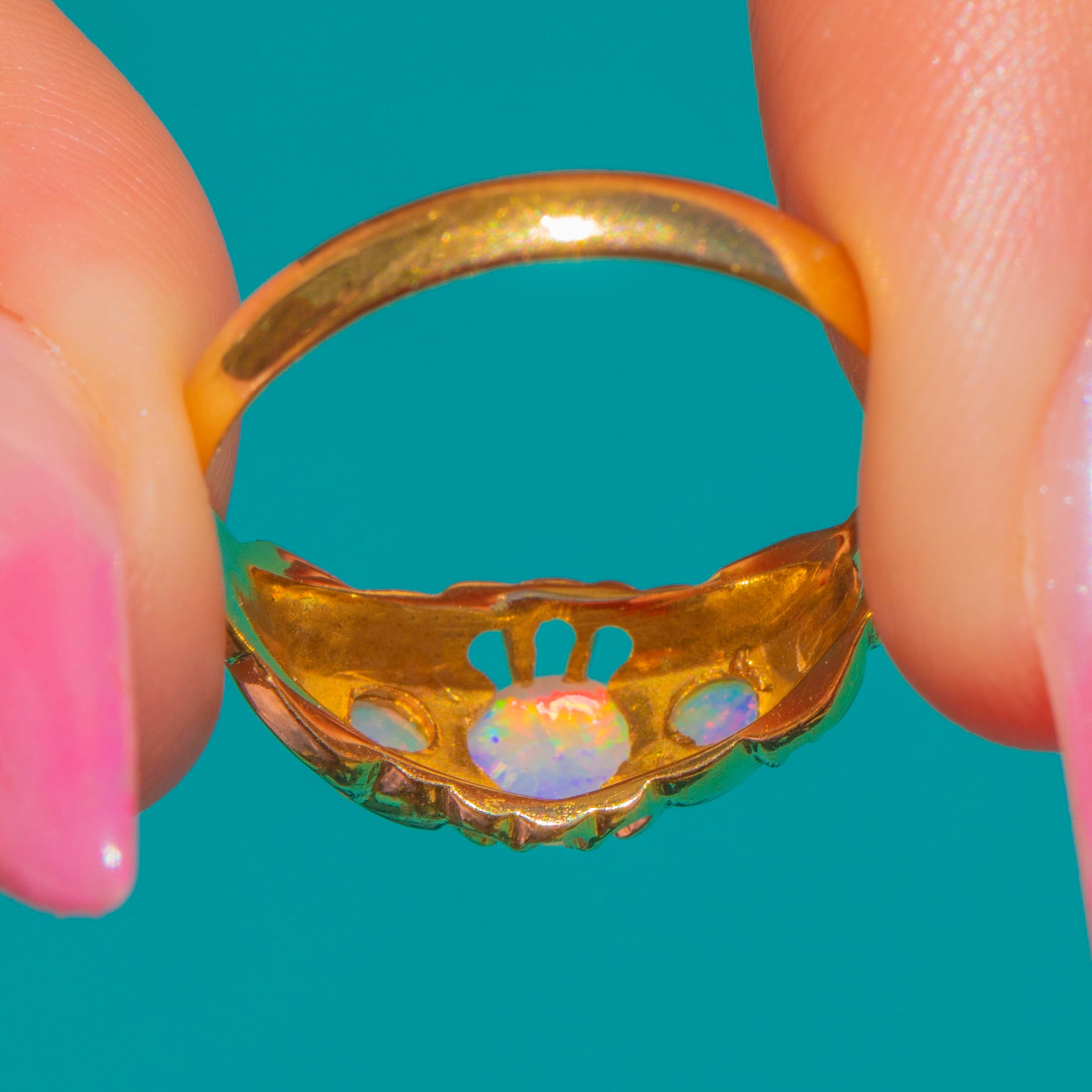 Vivid Antique 18ct Gold Opal Three Stone Ring c.1909